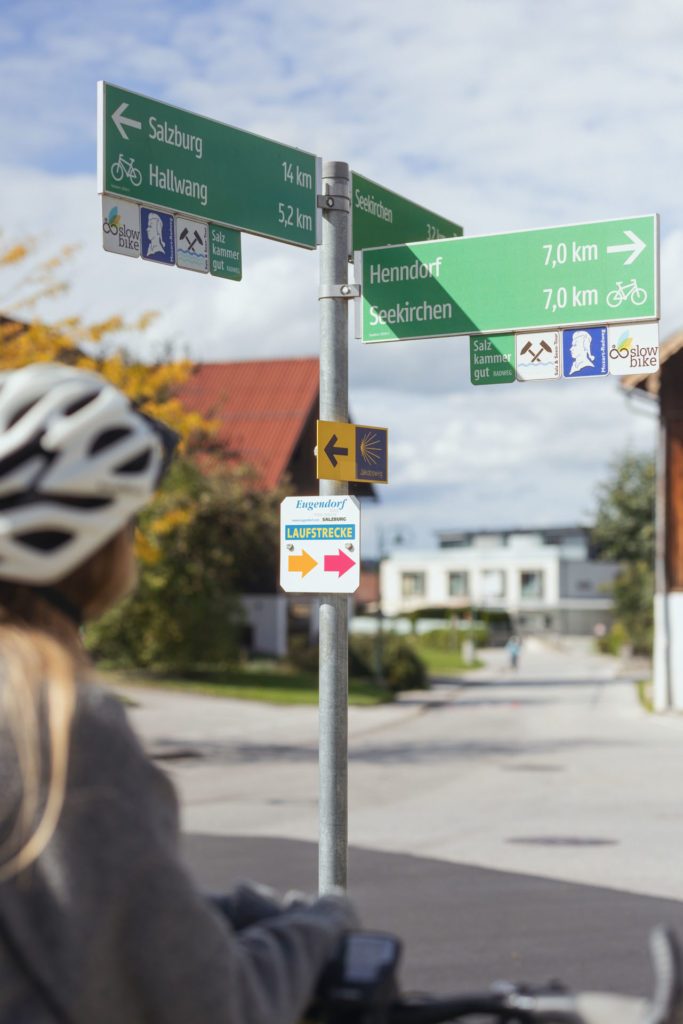 Die Radtouren führen von Eugendorf in alle Himmelrichtungen: Sie führen hinauf auf die Almen oder auf den Gaisberg, entlang von Bächen oder ans Ufer des Wallersees, auf historischen Bahntrassen ins Salzkammergut oder in die Stadt Salzburg. Radfahren in Eugendorf ist weit mehr als Bewegung in der Natur: Es ist Kraft tanken, Freude empfinden, lautes Jubeln und inneres Triumphieren. Du bist besonders. Und hier bist du richtig.